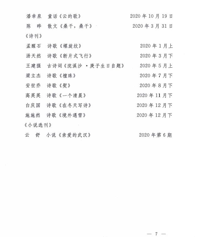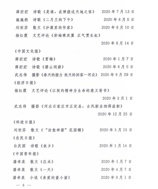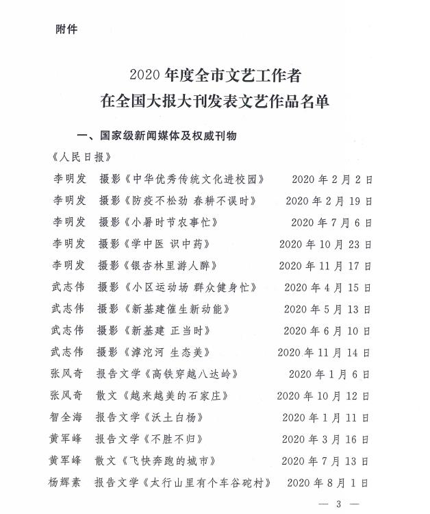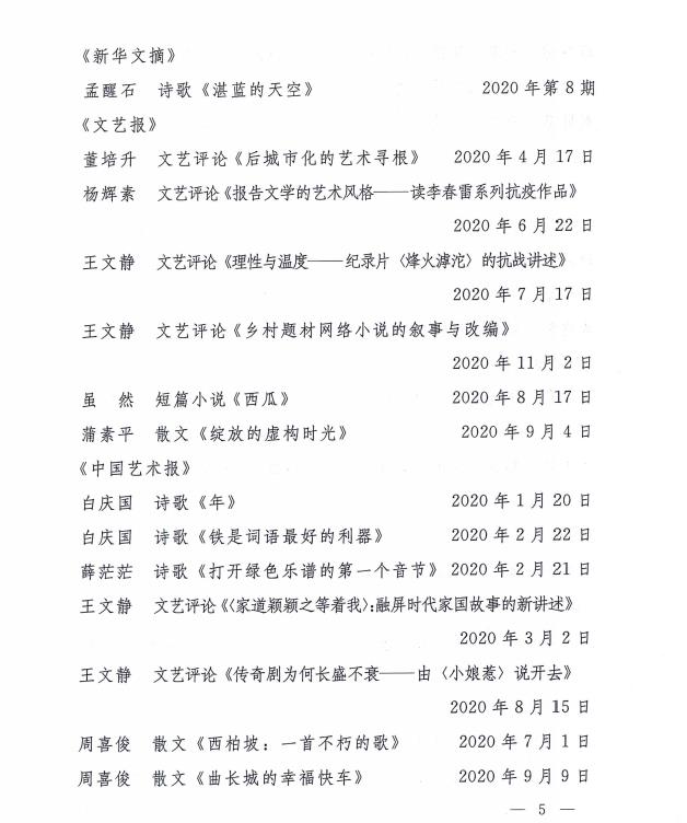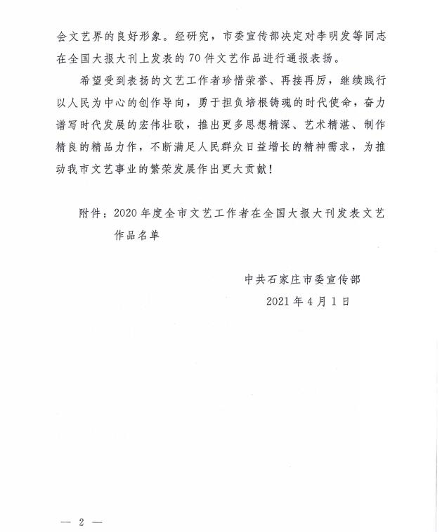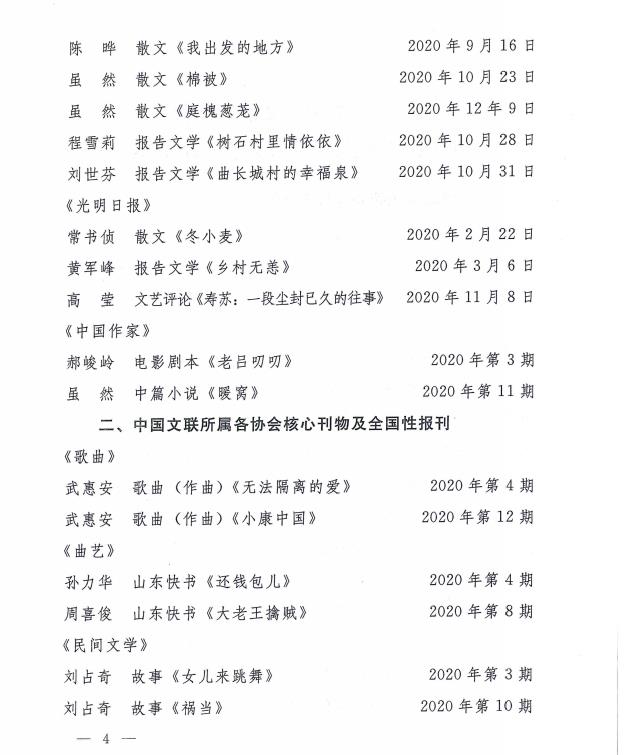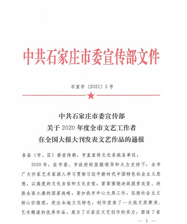 关于2020年度全市文艺工作者在全国大报大刊发表文艺作品的通报