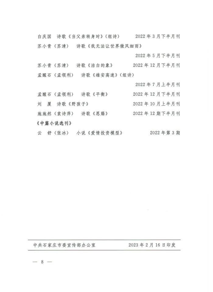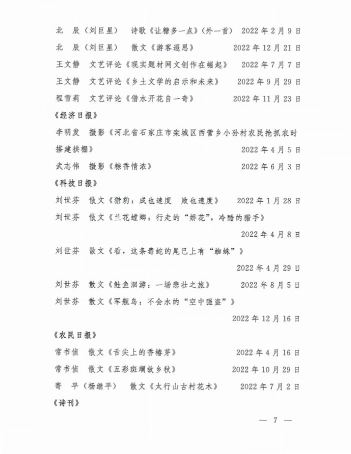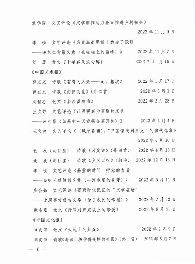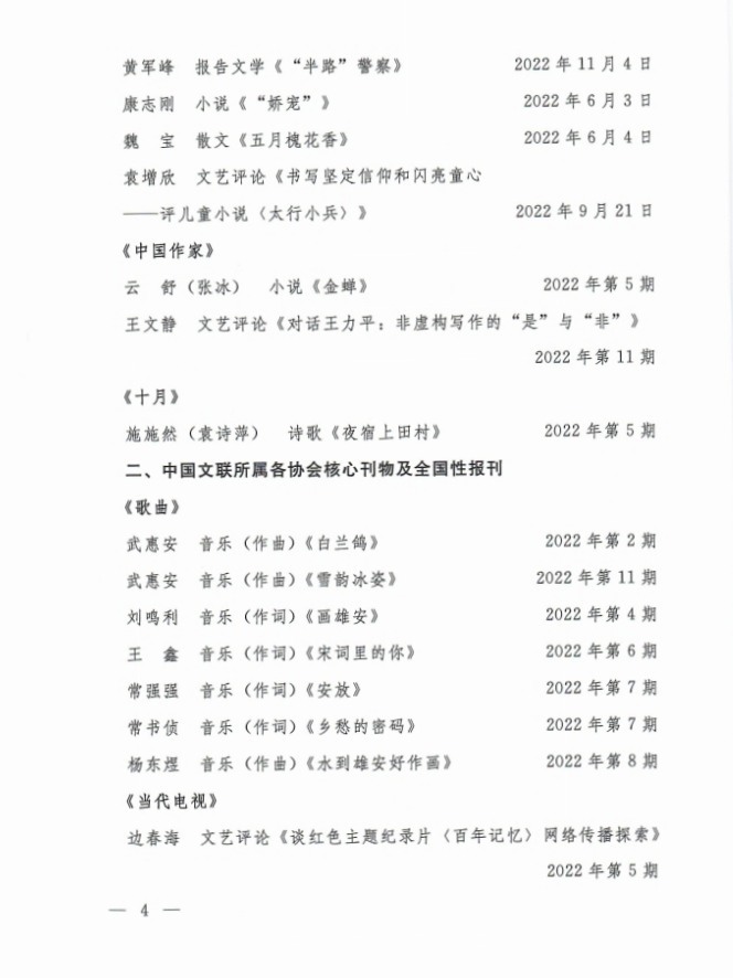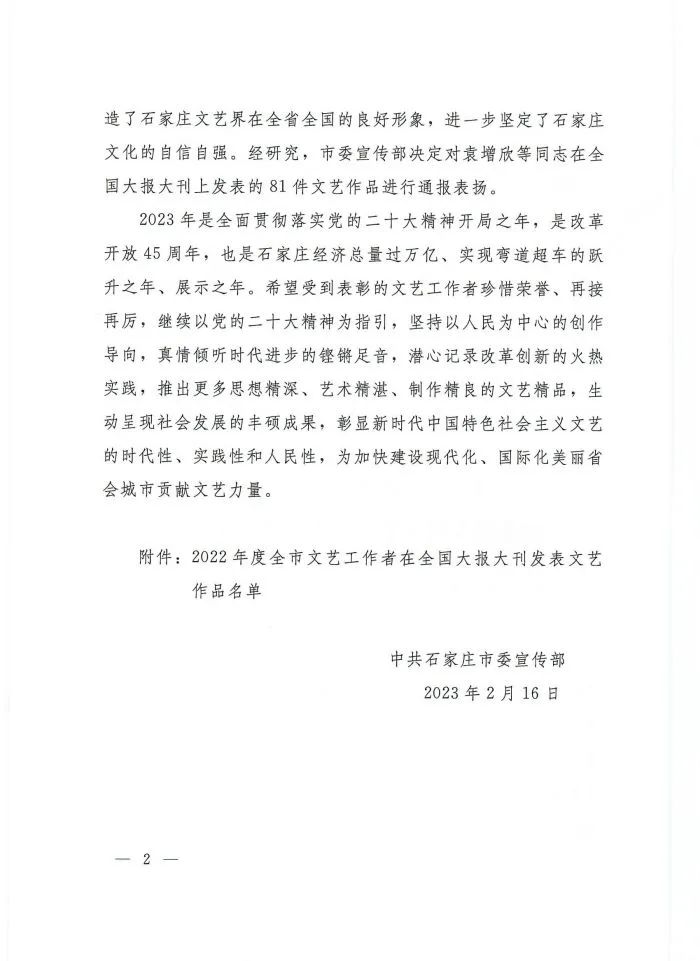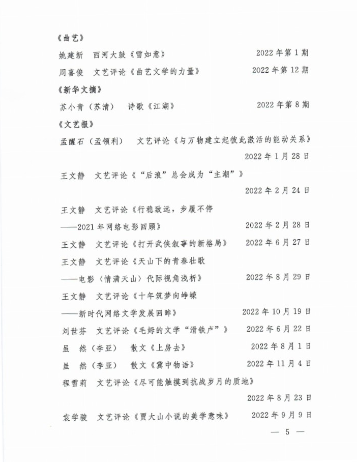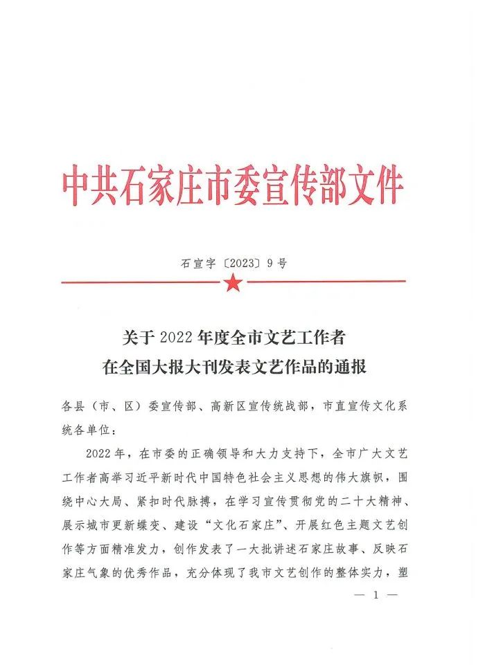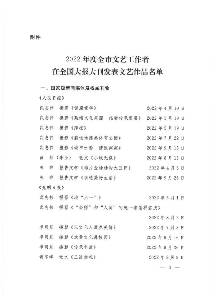 关于2022年度全市文艺工作者在全国大报大刊发表文艺作品的通报