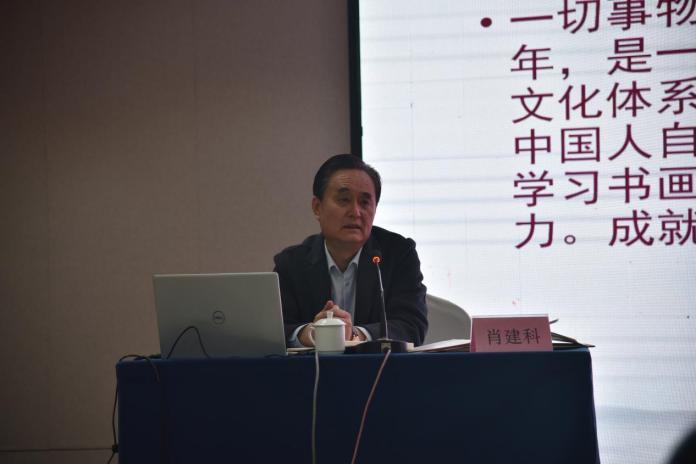 肖建科在讲座中结合自身书法学习经历,从“始化、规矩、功夫、心相、创造”五个方面对书法的学习进行了讲解。他强调,在书法教育中,积极向上的古代书法作品从各个方面不同程度地散发着社会教育功能。中小学书法教育同样是素质教育的重要环节,它不是片面的技法教育,也不是以培养书法精英为目的的教育,而是结合造型、审美、理论与技能的综合性教育。在技法层面可以让学生习得一手好字,在思想文化层面有助于提升学生思想智慧、道德情操、审美感知、鉴赏品位,具有不可或缺的社会意义。