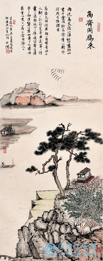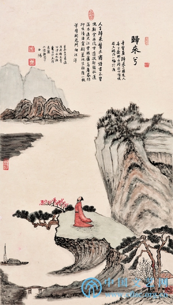 旭宇的绘画传递着“不求形似而直追逸品的格调”,这正如他诗词所蕴含的一样,温馨、畅达、秀润、蕴藉,以及质地洁美的情感流露。但是,旭宇的绘画绝不拘泥于自我的内心观照,他中得心源,抒怀达意,然后,通过“人生当有正气、笔墨当有正情”的担当,把自己的血脉偾张的激情灌注于山水形式,并以深入魂灵的创作发洁美之幽思,颂时代之崇高,描绘时空交错下超越现实的视觉山水,比真山、真水更能震撼人心。