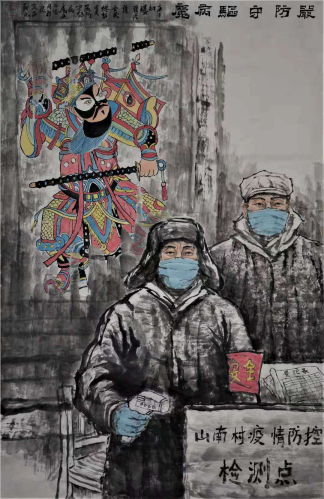 国画《严防守 驱病魔》 段朝林