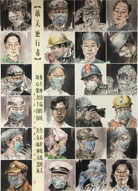 国画《最美逆行者》姚占礼