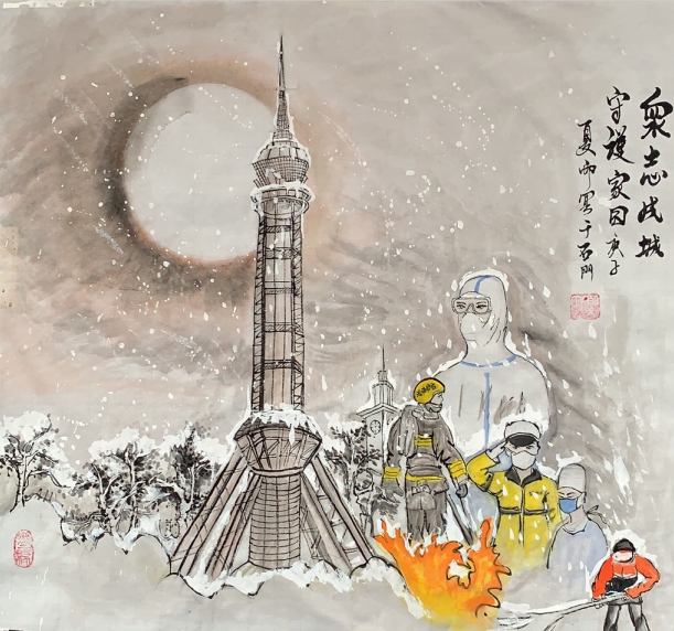 国画《众志成城 守护家园》史会然