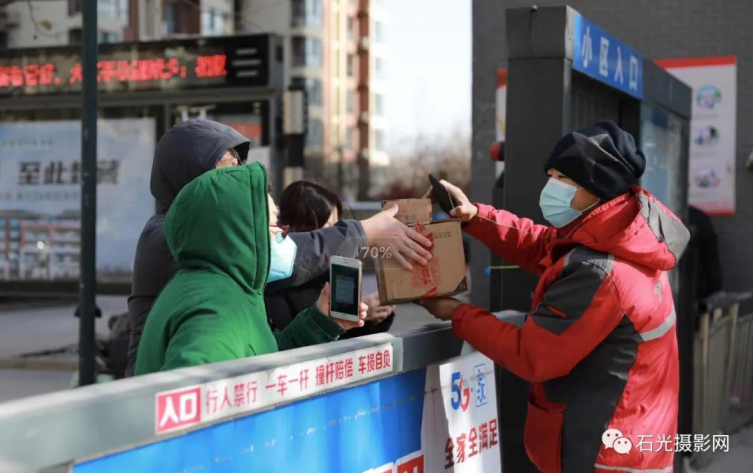 1月6日,小区实行封闭管理,居民采购生活用品(摄影 张烽刚)