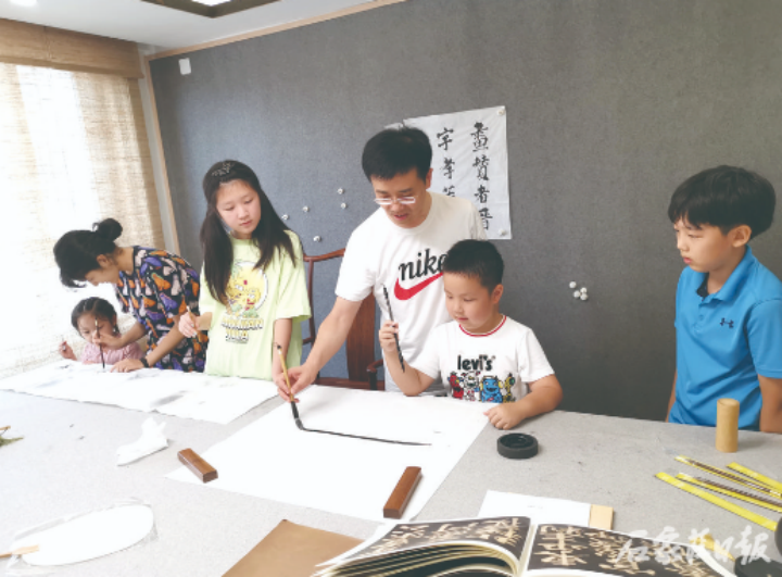 小朋友们在任源艺术空间学书法。