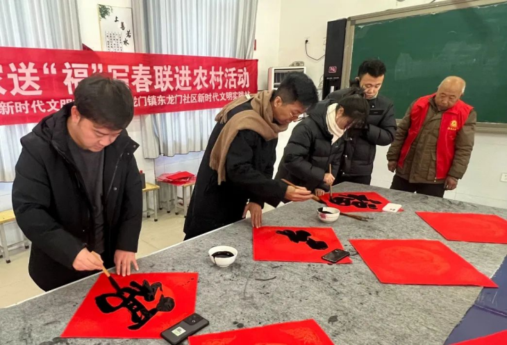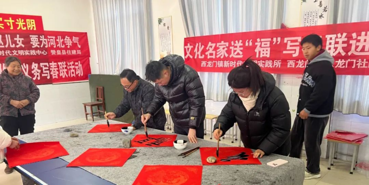 龙行龘龘,共迎新春。近日,“我是文明市民、要为城市争光,我是燕赵儿女、要为河北争气——2024年文化名家送‘福’写春联进农村活动”在石家庄市赞皇县西龙门镇东龙门社区举办。石家庄市田野书法家工作室、王凯旋书法家工作室的书法家们现场书写春联,为群众送去问候与祝福。