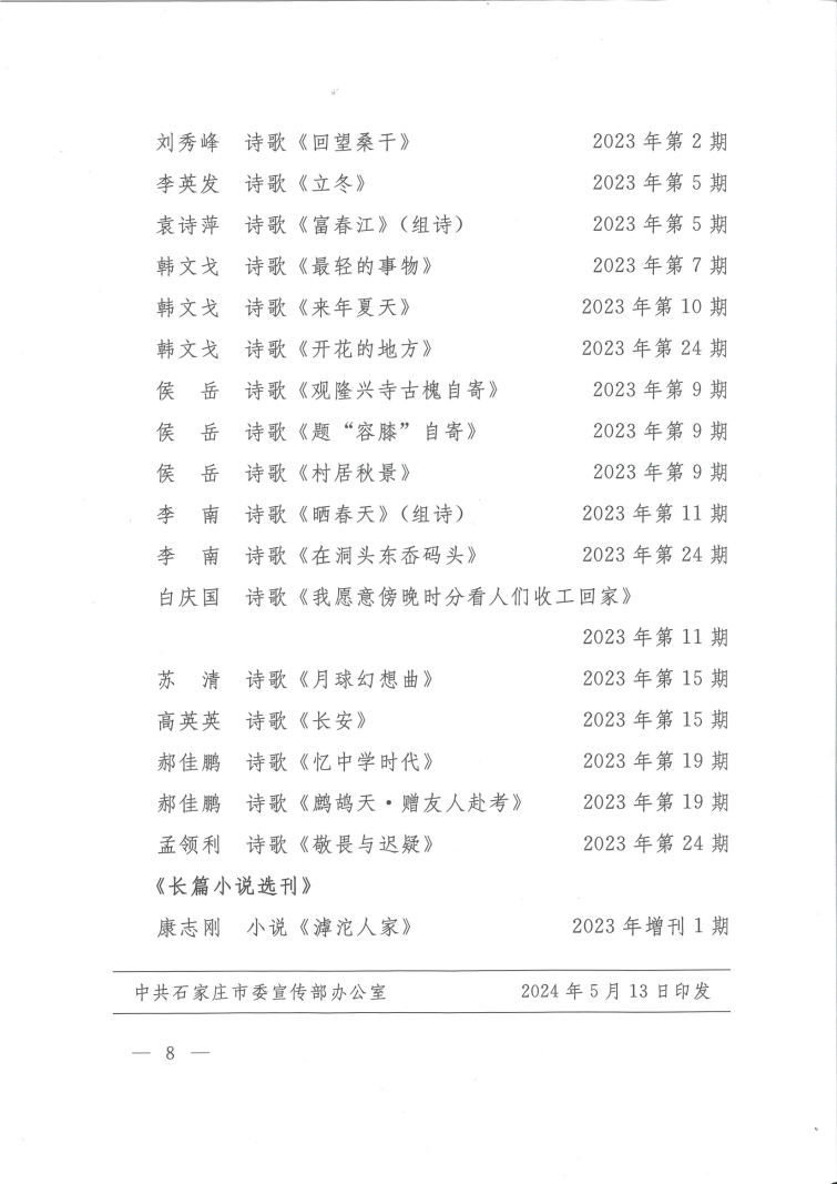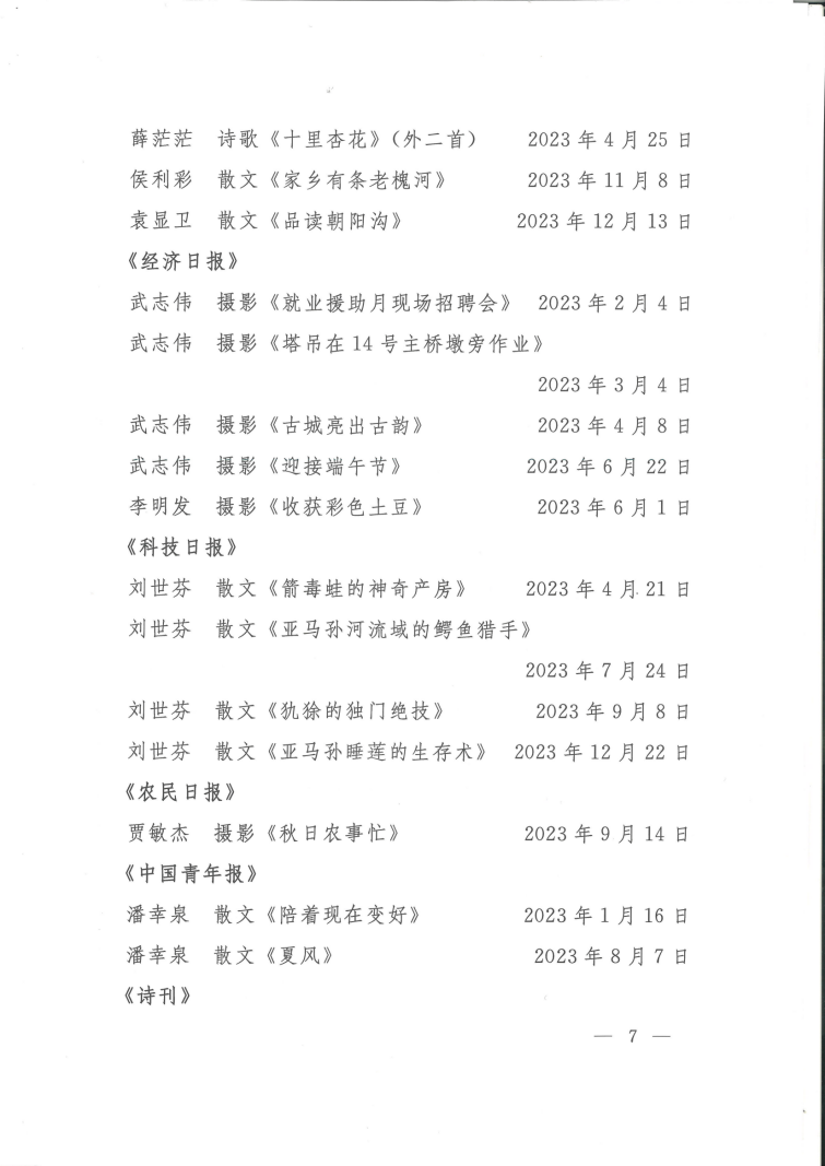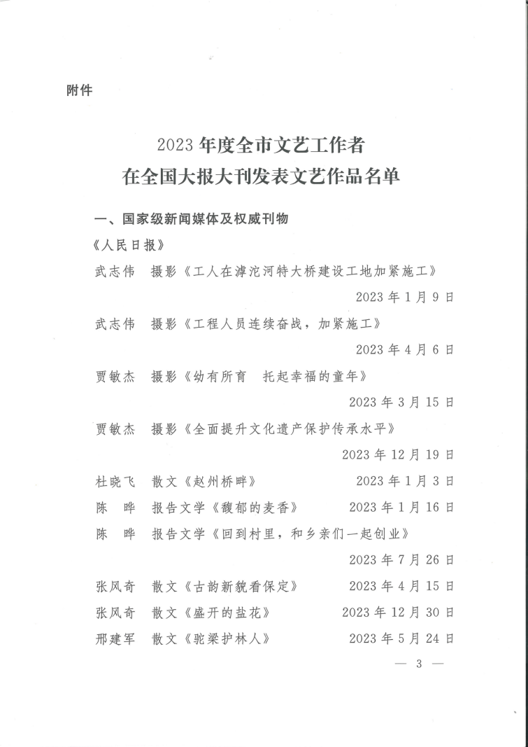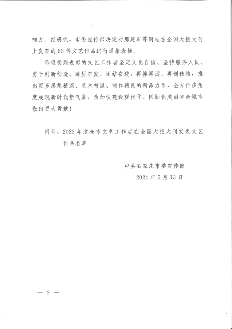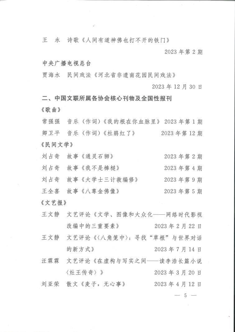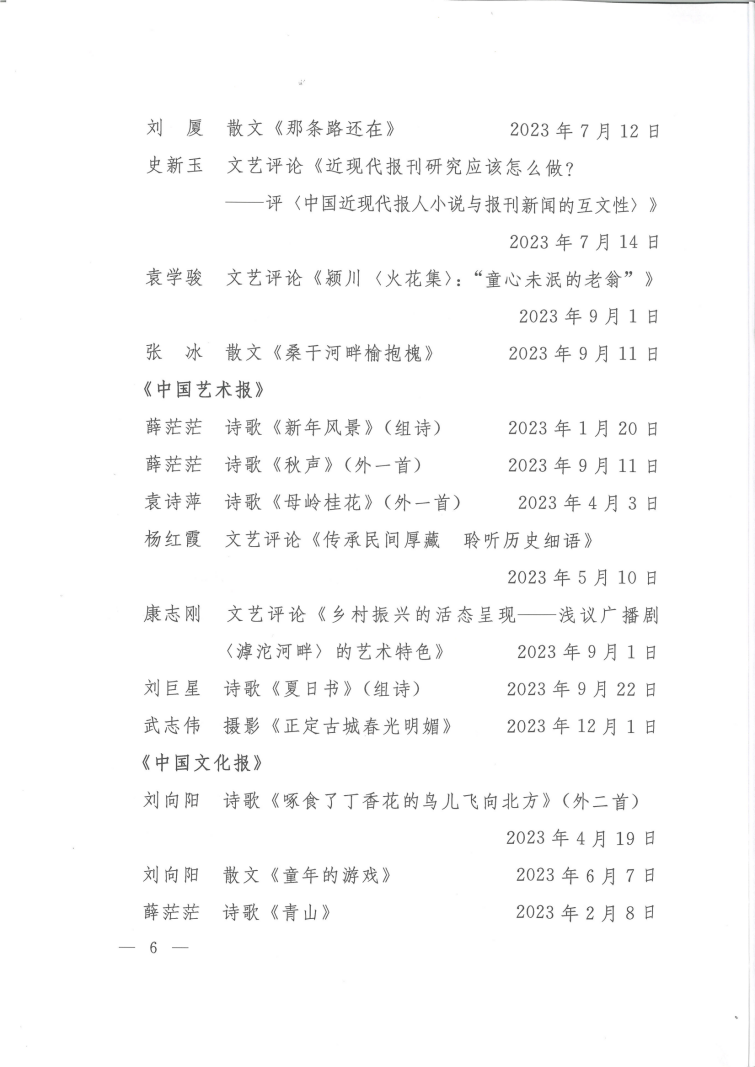 关于2023年度全市文艺工作者在全国大报大刊发表文艺作品的通报