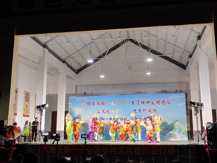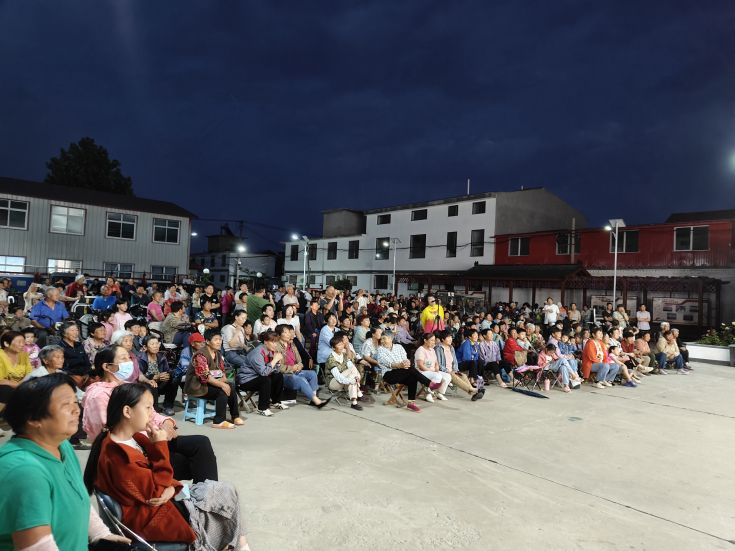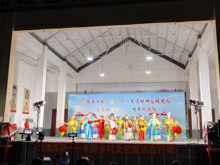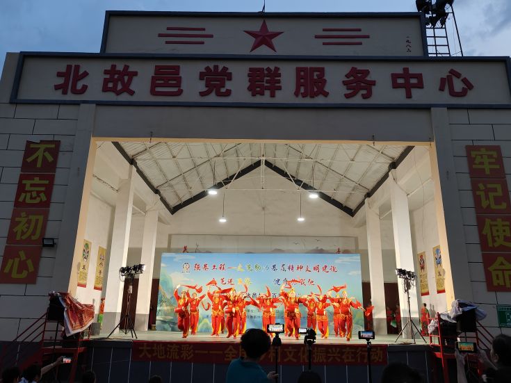 舞台上灯光闪烁、精彩纷呈,台下人头攒动、车水马龙。腰鼓《中国梦》、非遗节目《喜庆大头舞》气势恢宏,引得现场观众连连叫好;丝弦《牛郎织女》讲述北故邑村人民的当代故事,赢得了广大村民的阵阵掌声;歌曲《今天你是我的生日》恰逢共和国75周岁生日,嘹亮歌声、振奋人心;豫剧《抬花轿》音舞结合,众位演员轻快的舞步整齐而有序,为表演又添一份精彩……