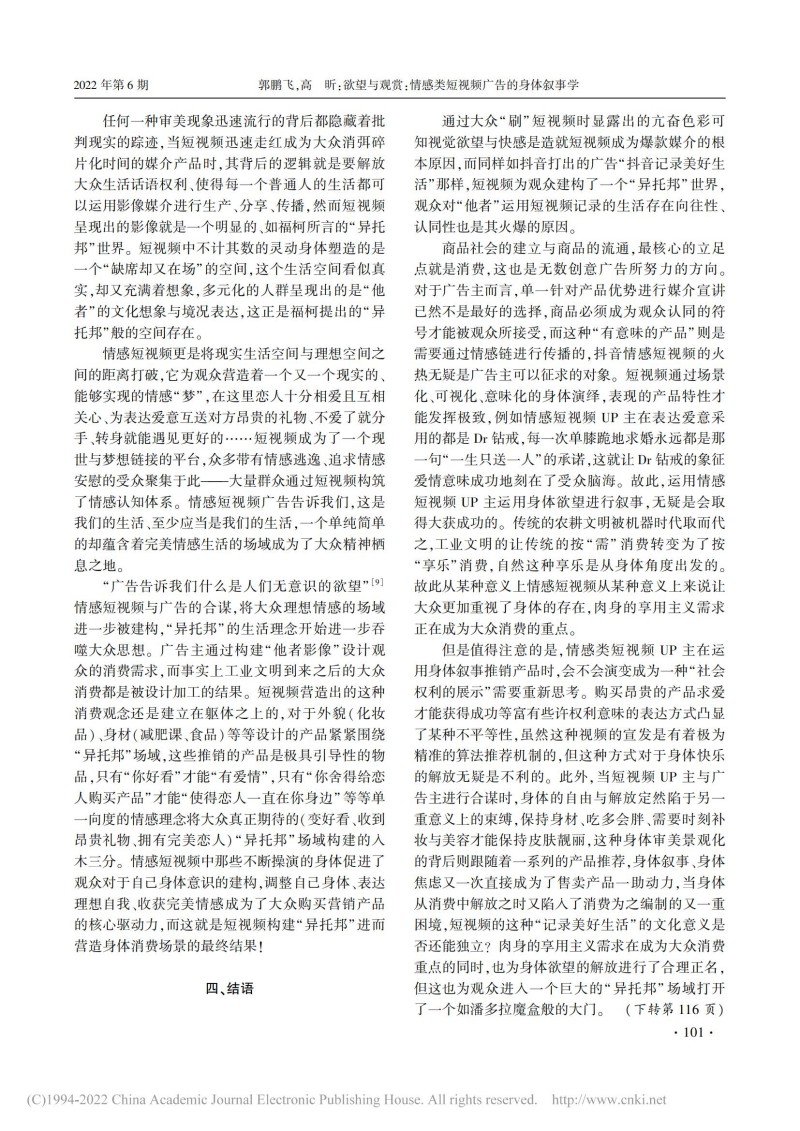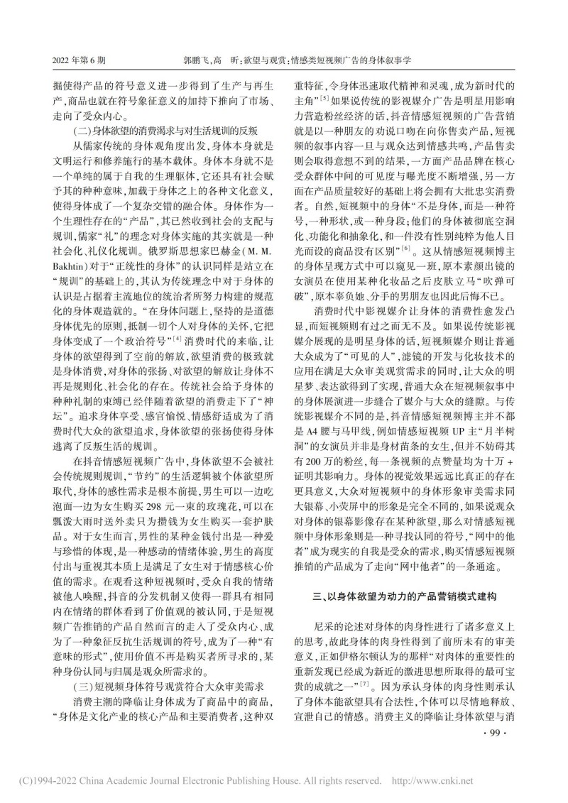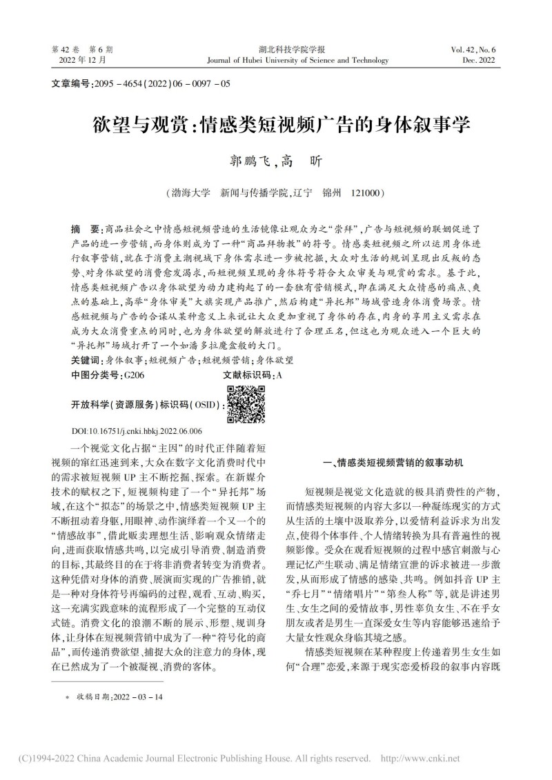 郭鹏飞:欲望与观赏:情感类短视频广告的身体叙事学