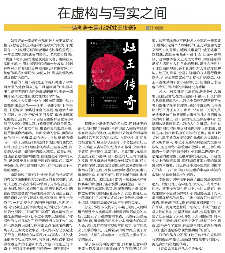 汪霖霖:在虚构与写实之间——读李浩长篇小说《灶王传奇》