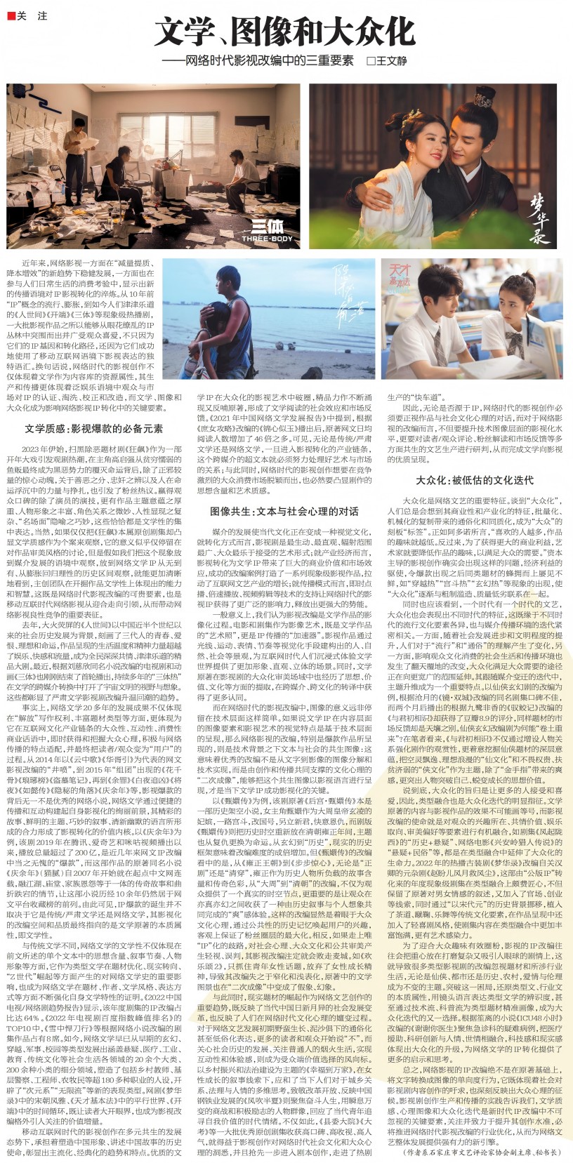 王文静:《文学、图像和大众化——网络时代影视改编中的三重要素》