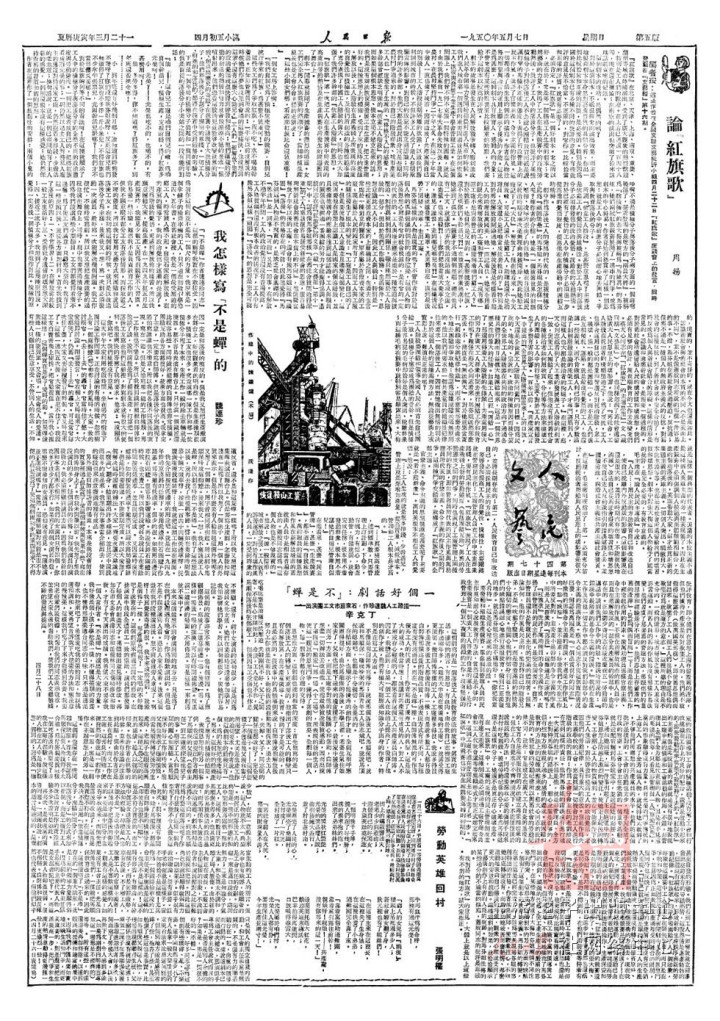 本来这个戏想不到会演到别的地方去,只是为了在我们段里遇有晚会时,作为联欢演出的。但是也不是不愿意让别人看。恐怕人家不爱看。后来这个戏在我们段里演出后,想不到会被旁人重视了。啊呀!我真觉着奇怪的很。我本来没写过剧,就像是个鸭子一样,哪会学鸟唱呢!一定唱的不好听吧?说实在的,这个剧原来经过三四次的修改,在排演当中我段全体员工一致的协助,演员们都发挥了每个人的创造天才。集体提出意见随时修改。再加石市文委会洪涛同志和任桂林同志帮助修改和指教,才有了今天演出的成绩。我希望大家不要拿我一个人当作者。《不是蝉》的演出是大家的力量。我好像是个小孩子学挖菜一样,不懂得菜类的营养,也不懂得哪类菜适合同志的口味,只不过是连泥带水的挖来罢了。希望爱吃我的菜的同志,加以挑选和调和,更希望告诉我下次挖菜的方法和应注意的几种菜,这样我们吃了下来才能得到营养。我要向老前辈们致敬礼,向帮助我们的同志表示敬意,并希望大家永远的帮助我们,使我们工人文艺战线不断的发展与提高。