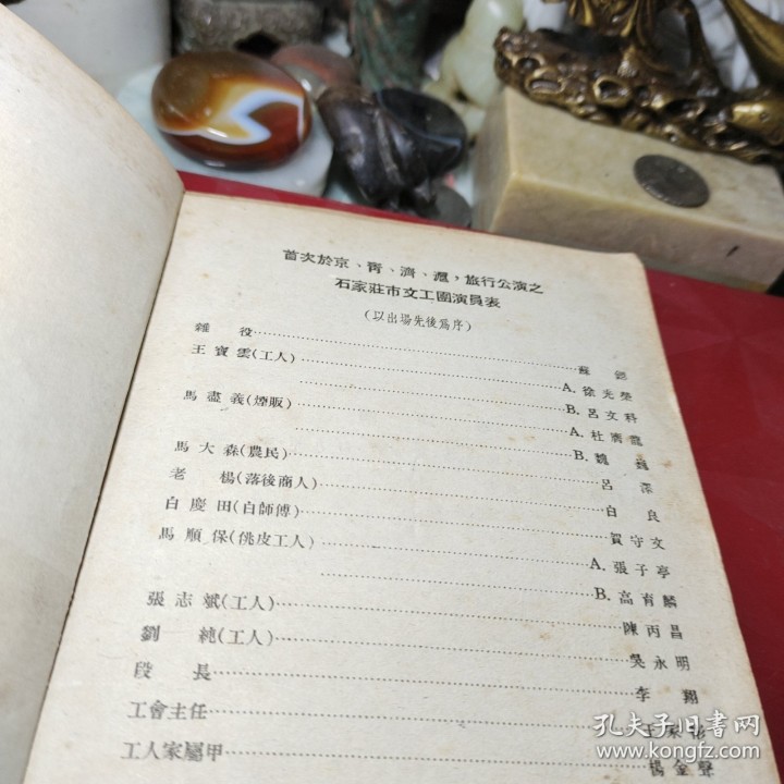 另外关于白师傅诉苦的场面,本来是我段曹师傅的实事经过。但是为了使这个剧效果更集中些,写在白师傅的身上了。在我未开笔以前,我先想了想我段演员的多少,每个演员的性格,和每个演员的演技能力。我必须照顾到演员方面,因为我们业余剧团和专业剧团不相同。我们的女演员只有四个,你写多了或少了都不行。如果写了两个女演员的戏,那么不能参加的女演员,恐怕就有意见。“让她演就不让我演吗?”当然,这样照顾对写剧是很不方便的。但是我为了使这个剧团初步的巩固起来,不得不照顾。还有,剧中女演员的词句很少,这是因为女演员文化太低,她们在业余时间还要参加学习,我怕影响她们学习。所以词句都很少,使她们容易记住。