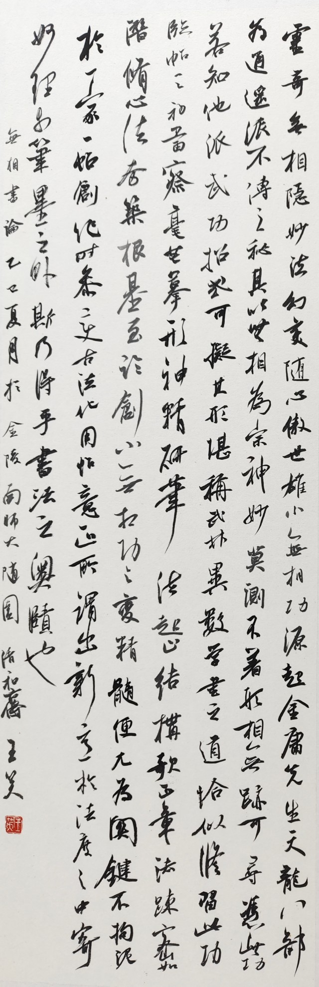 王笑,1994年生人,河北美术学院教师,讲师、中国书法家协会会员,2024年河北省文联“燕赵秀林计划”中青年文艺人才,河北省书法家协会书法创作先进个人,国家艺术基金青年书法评论人才项目成员,石家庄市书法家协会学术委员会副主任、草书委员会秘书长。主持国家艺术基金青年艺术创作人才资助项目。书法作品入展第十三届全国书法篆刻作品展进京展、第十二届全国书法篆刻作品展、第五届全国青年书法篆刻作品展、第三届全国手卷书法作品展、第二届全国大学生书法作品展、第十二届中国艺术节全国书法篆刻作品展;论文获第十二届河北省文艺评论奖二等奖、第十八届石家庄市文艺繁荣奖。