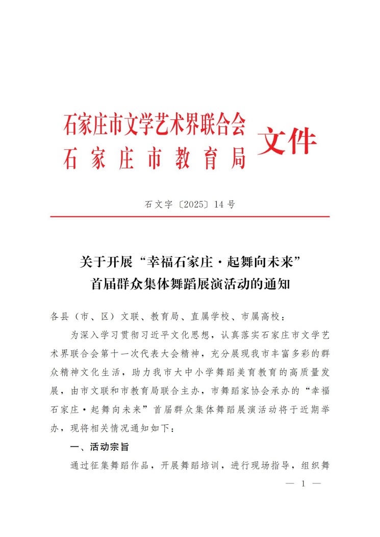 关于开展 “幸福石家庄·起舞向未来” 首届群众集体舞蹈展演活动的通知