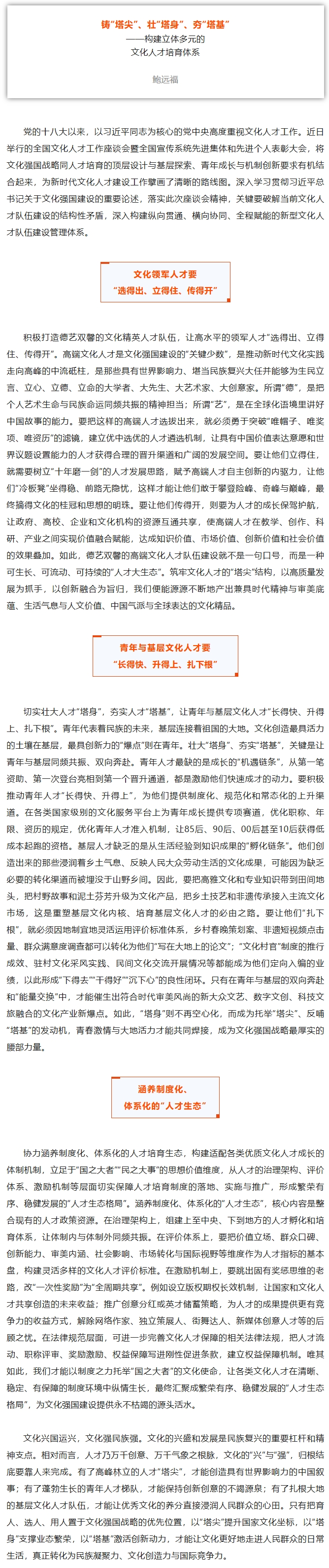 构建立体多元的文化人才培育体系