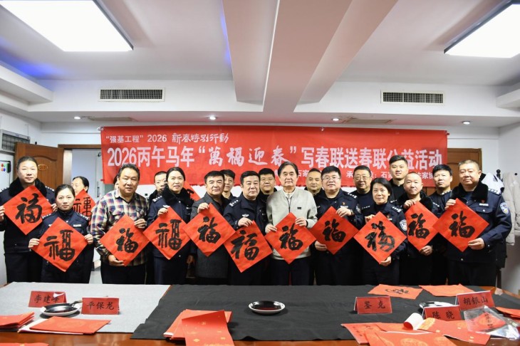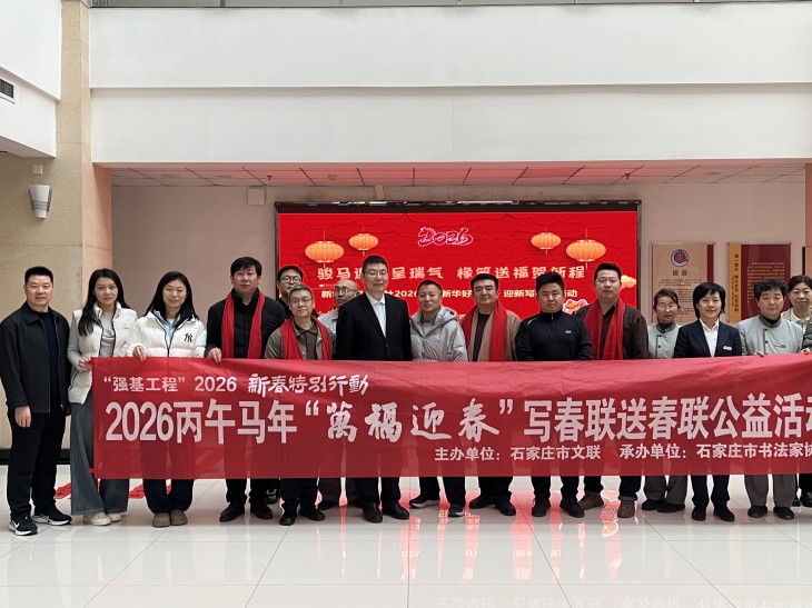 石家庄市文联主办、市书协承办的 “强基工程” 2026 新春特别行动 ——“万福迎春” 写春联送春联活动,以“深入生活、扎根人民”为宗旨,持续开展进企业、进社区等,累计送出数千副春联与 “福” 字,用传统笔墨传递新春祝福,营造出浓厚的节日氛围。