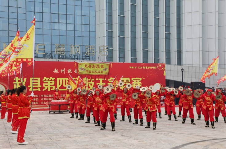 3月3日,赵县第四届 “鼓王争霸赛” 在赵州城市综合馆西广场擂响战鼓。全县各乡镇 9 支优秀民间鼓队齐聚赛场、同台竞艺,以铿锵鼓乐欢庆元宵佳节,奏响丙午马年奋进强音。