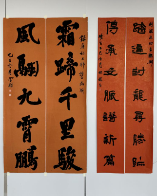 活动现场,墨香四溢,选自全国征稿的100余幅春联作品错落悬挂、熠熠生辉。楷书端庄稳重,行书飘逸灵动,隶书古朴厚重,草书酣畅淋漓,不同书体的笔墨韵味交织碰撞,既藏着传统年俗的烟火气,又透着书法艺术的雅致意,吸引了不少群众驻足观赏、细细品读。