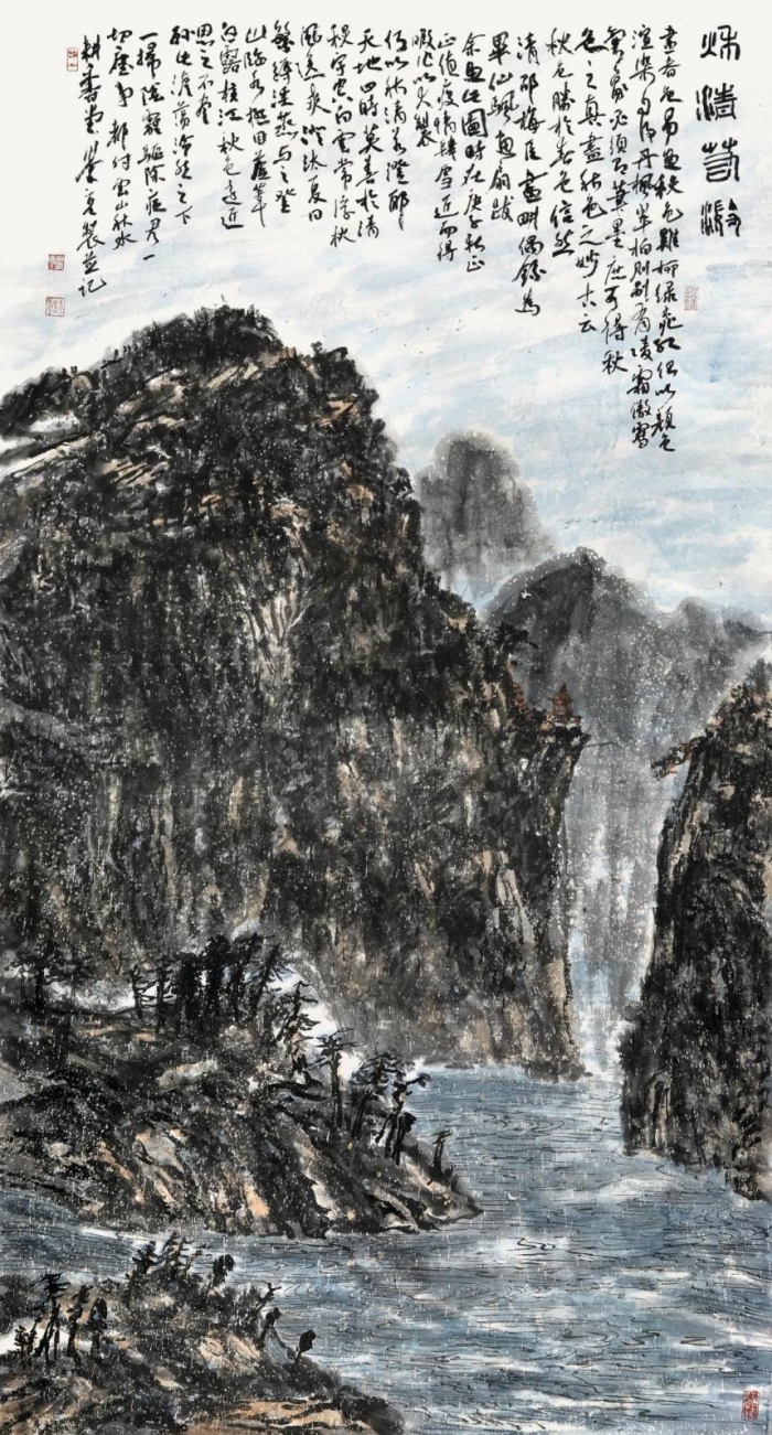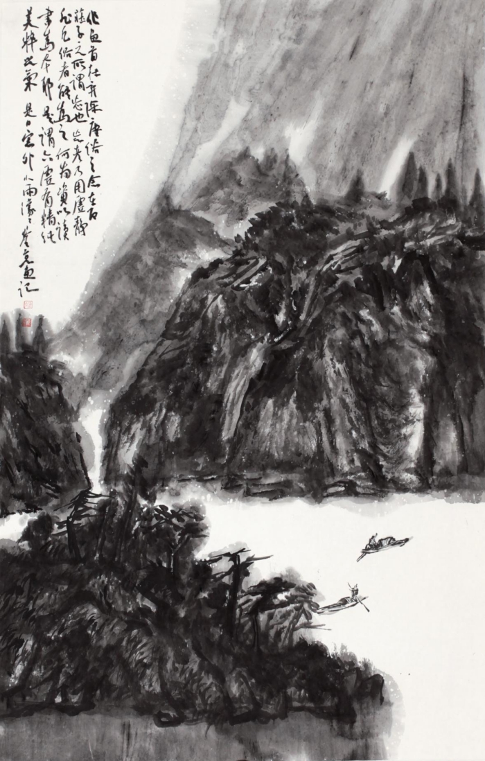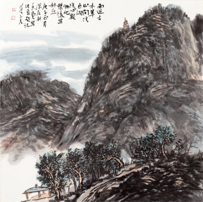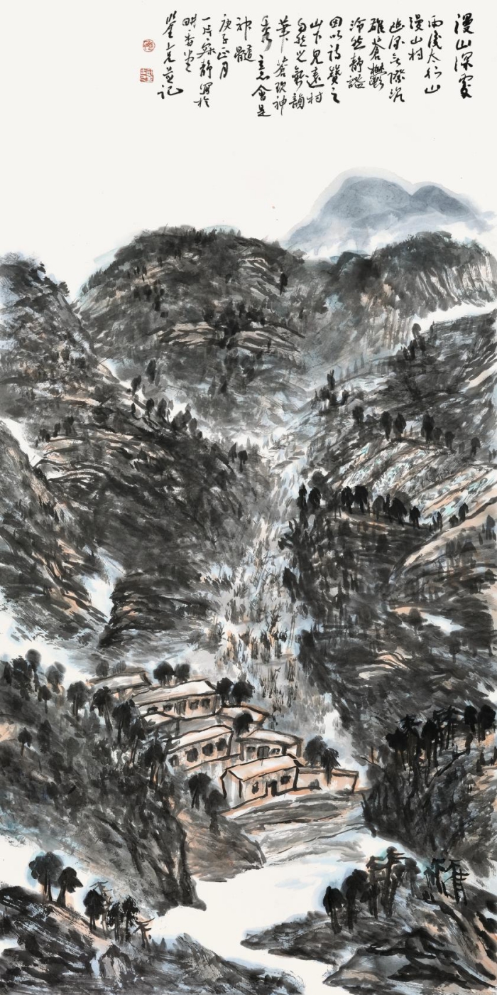 雨后太行山漫山村,幽深无际沉雄苍郁,泠然静谧,因以诗赞之:山下见远村,自然之气韵。笔苍现神秀,意会是神髓。
