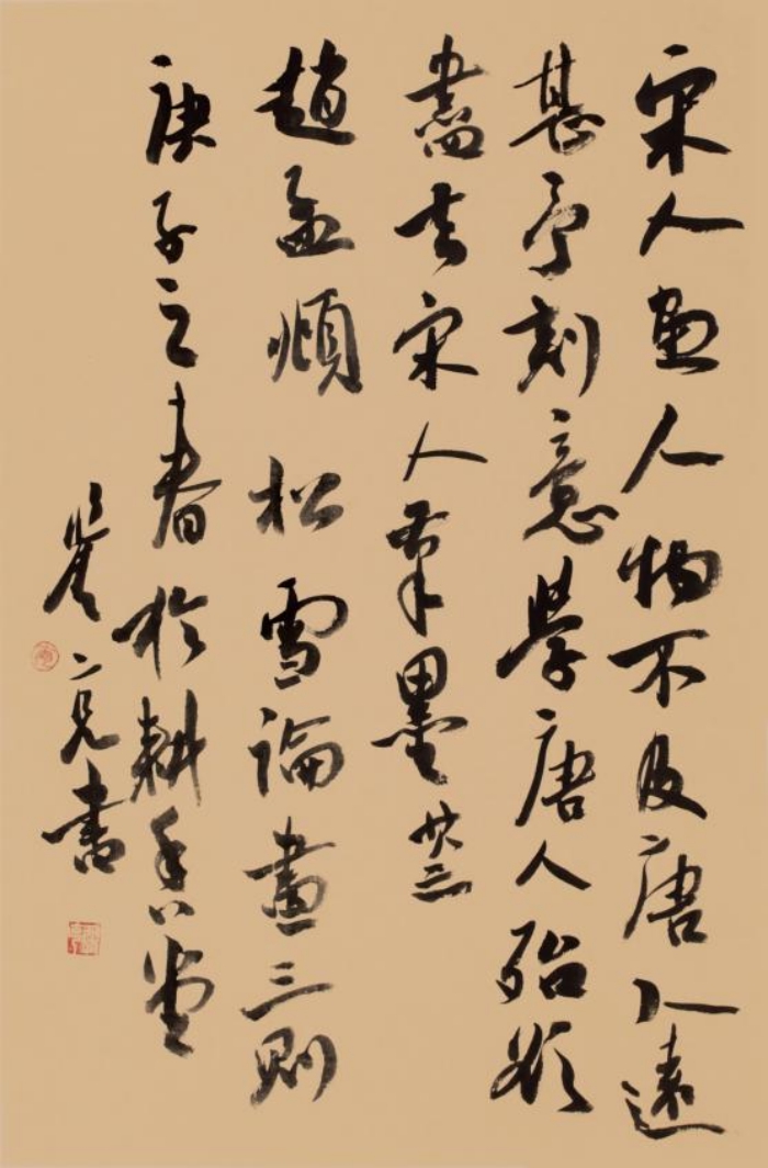 作画贵有古意,若无古意,虽工无益,今人但知用笔纤细,傅色浓艳,便自谓能手,殊不知古意既亏,百病横生,岂可观也,吾所画,似乎简率,然识者知其近古。故以为,此可为知者道,不为不知者说也。其一画人物以得其性情为妙,东丹此图,不惟尽其形态,而人犬相习,又得于笔墨丹青之外,为可珍也。其二宋人画人物,不及唐人远甚,予刻意学唐人,殆欲尽去宋人笔墨。其三赵孟頫松雪论画三则。