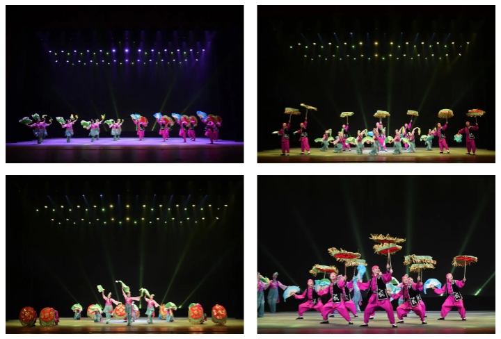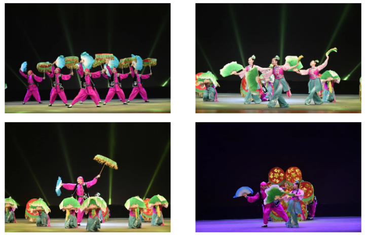 在河北,流传着一句俗语——“上到九十九,下到刚会走,井陉拉花遍地扭。”舞蹈《腊梅花开》就是根据河北省最具代表性的国家级非遗保护项目“井陉拉花”编创而成的。经过多年的打磨,该作品以浓烈的情感展示了腊梅花开的坚韧不拔,象征着我们燕赵儿女不屈不挠、昂扬向上的精神面貌。舞蹈动作抑扬有度、刚柔相济,既有浓郁的乡俗风情,又不失端庄秀雅的风姿,极具魅力。该作品在继承传统的基础上积极创新,在保留经典的“抖肩”、“翻腕”、“扭臂”、“吸腿”、“撇脚”等拉花舞蹈语汇的同时,在节奏与编排等方面都有所突破,也令整个作品更加阳光大气,是一种独具特色的民间广场舞蹈形式。